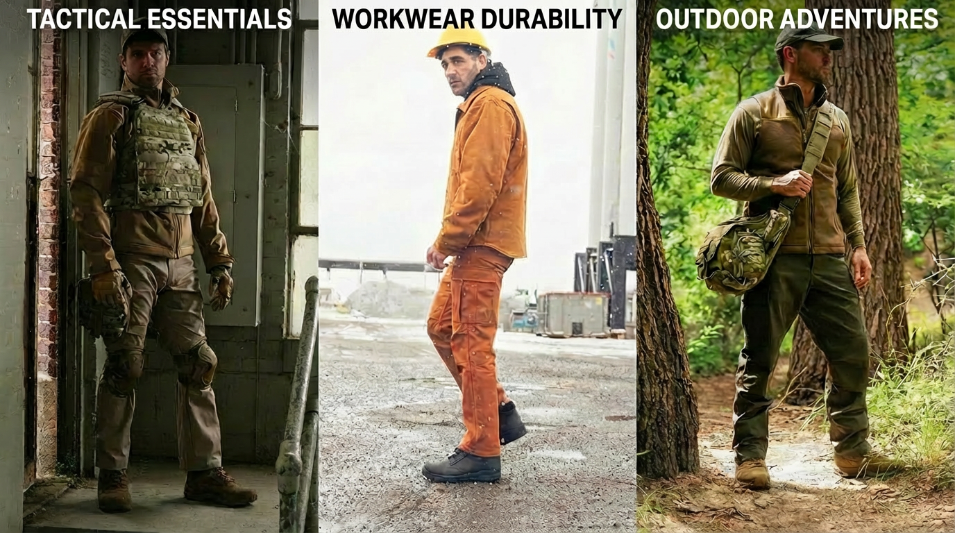 featuring ample cargo pockets to securely carry all your daily essentials on the go.The Benchmark for Durable Comfort