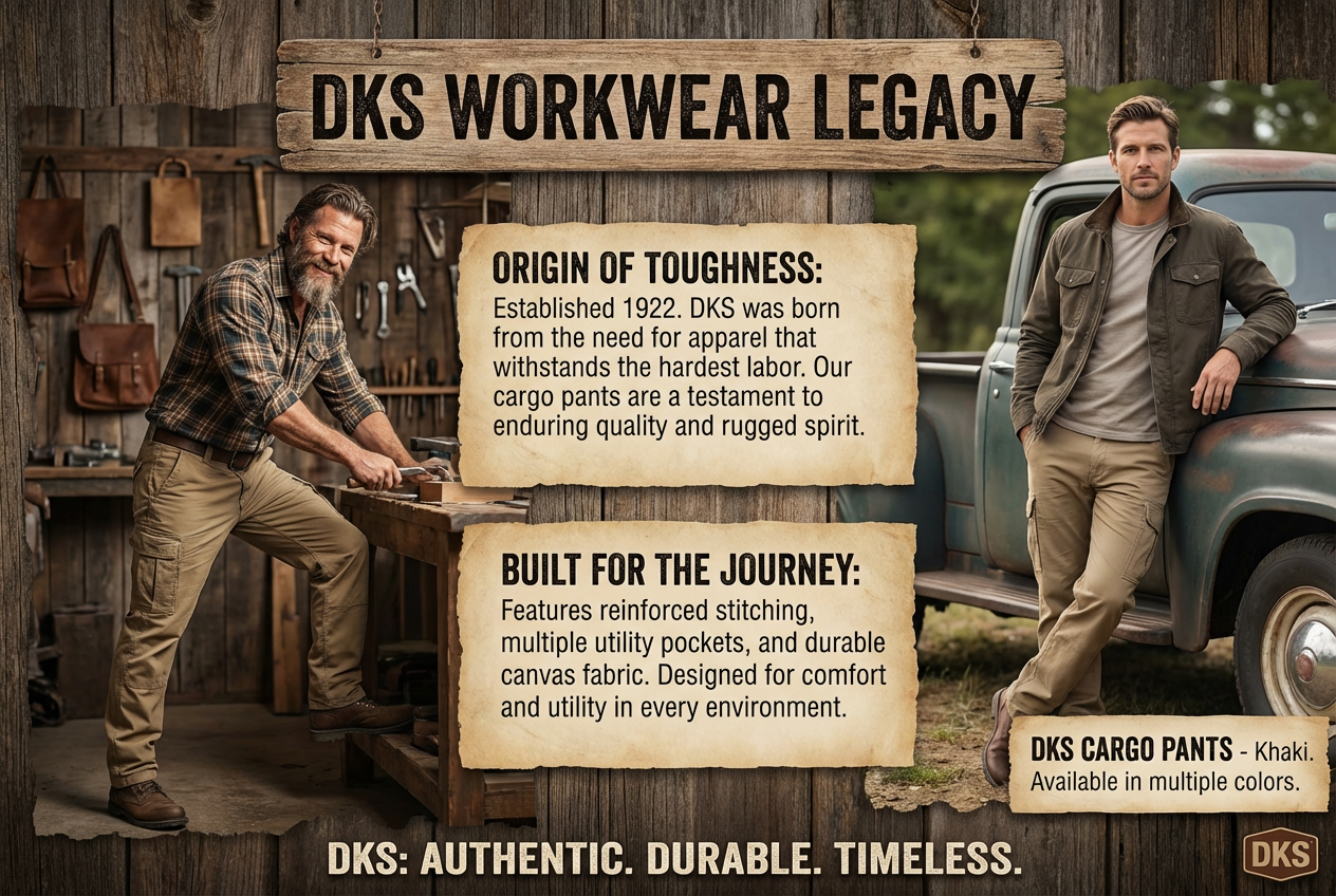 Born in 1922, DKS Workwear embodies the rugged spirit :We craft authentic, durable apparel designed with enduring quality to withstand your hardest journey and stand the test of time