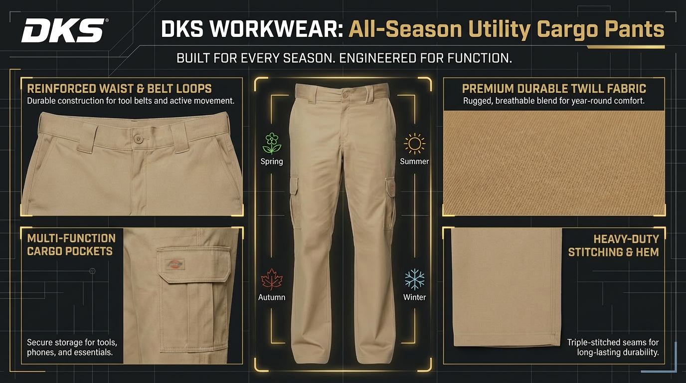 DKS work pants are rugged and durable : featuring a practical multi-pocket design and breathable comfort & They are engineered for year-round use in construction and demanding manual labor